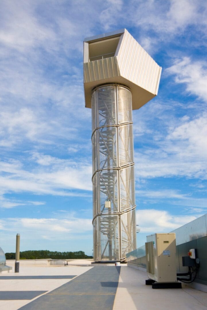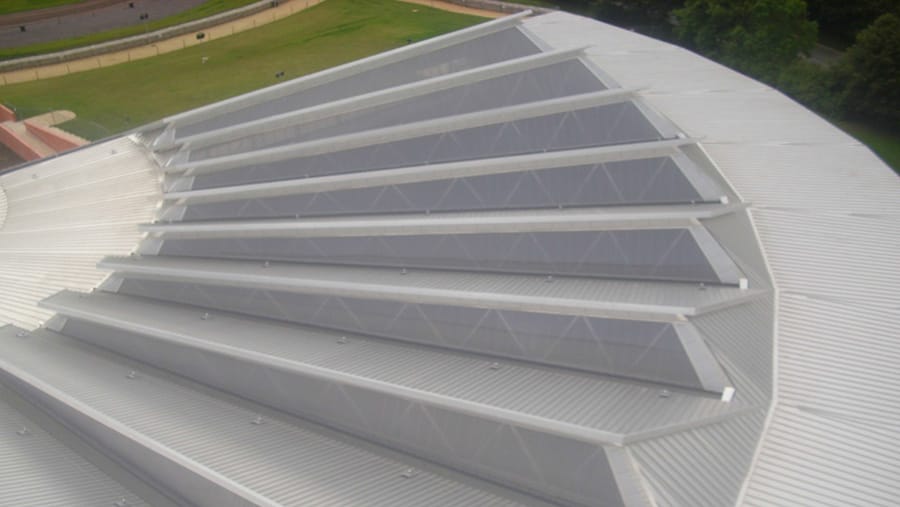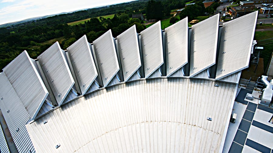 Various profiles of standing seam to varying pitches were used including tapered sheeting at the central point and off site construction with the viewing pod. In addition just to add to the complexity other systems incorporated in the installation included Plastmo Polycarbonate rooflights, Kingspan wall cladding, single ply membrane, Trespa rain-screen, and Latchways Mansafe system.