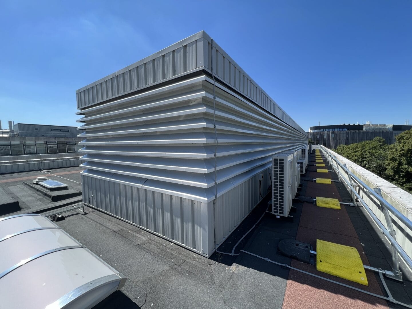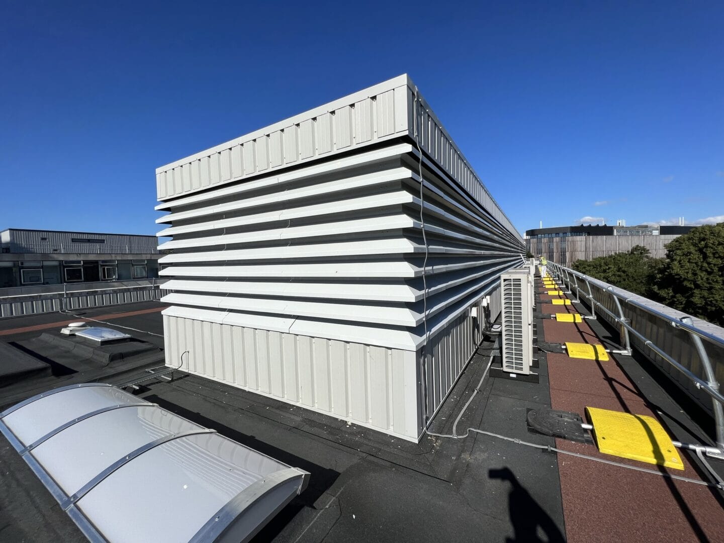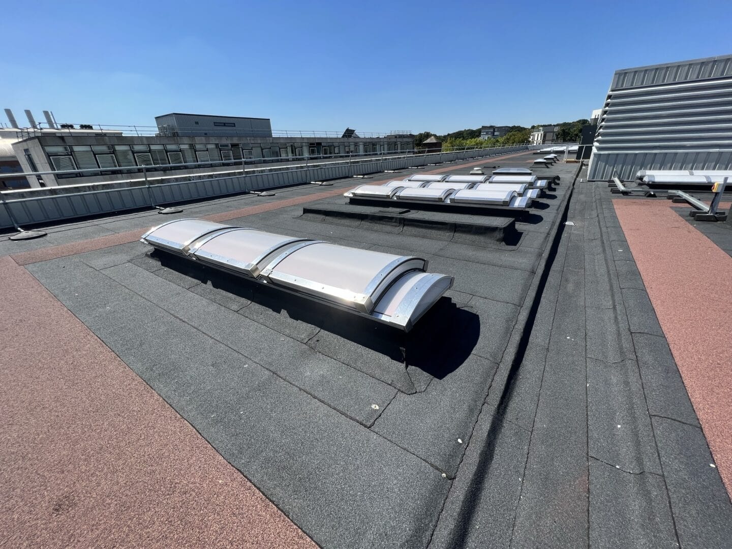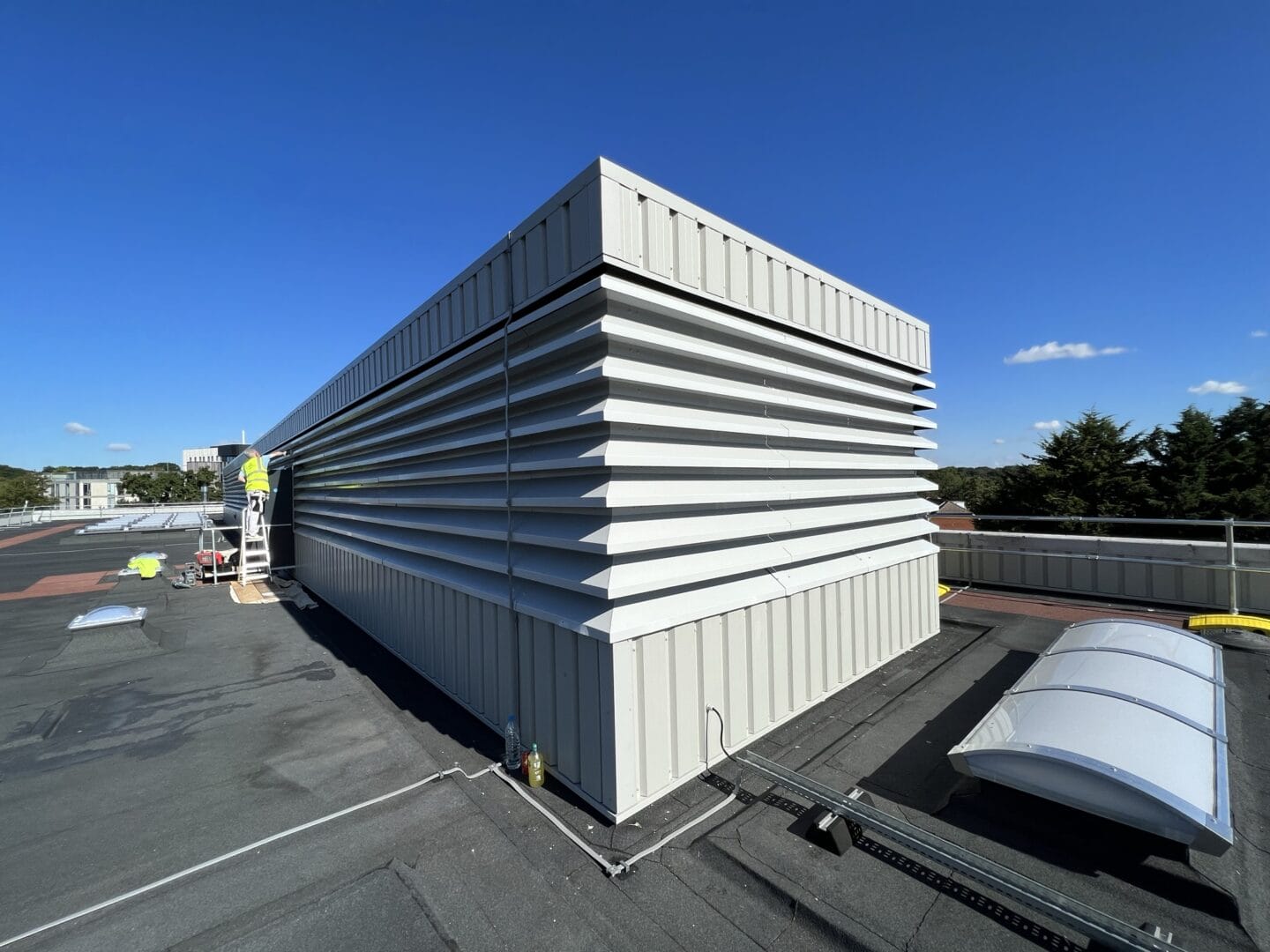 The £300,000 project involved upgrading the main flat roof, plant room roof, and lower roof. It included a 20-year warranty and features such as insulation with tapered gutters and the removal and replacement of roof lights, guardrails, and wall cladding. The project was scheduled for the summer months to minimise disruption to the university environment below.