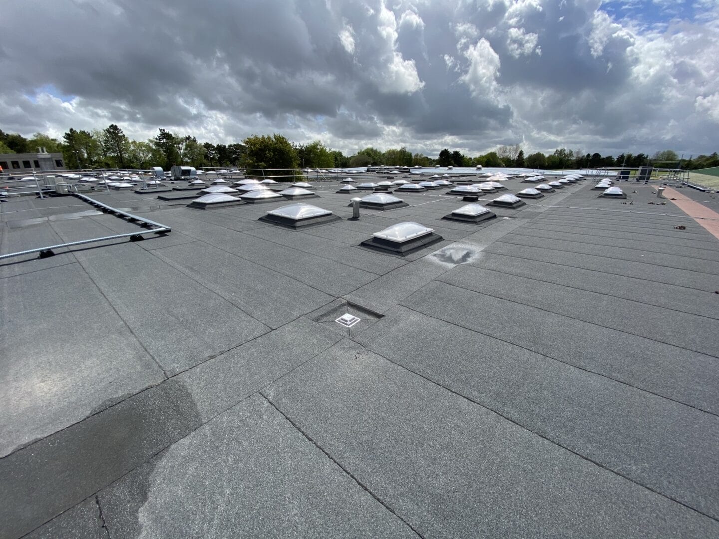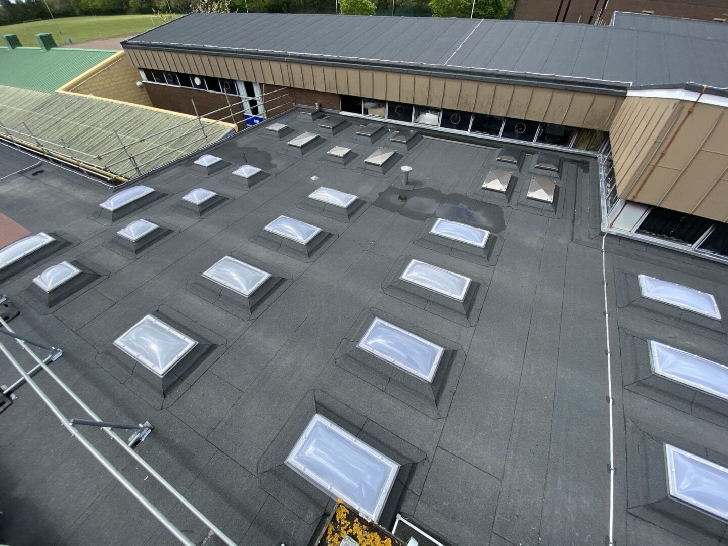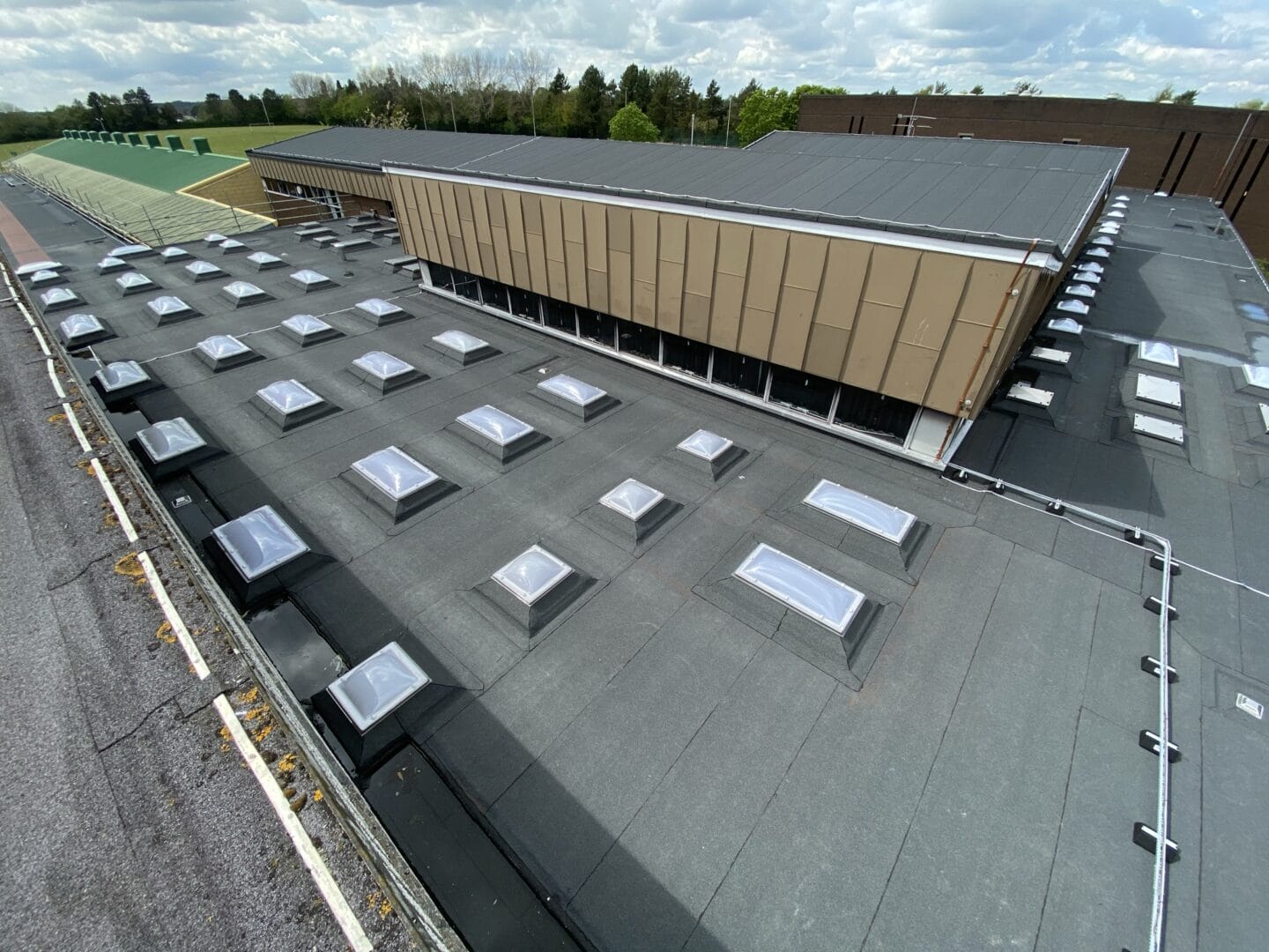 The project involved extensive roofing, and refurbishment works within a live, fully operational school, requiring meticulous planning to ensure minimal disruption. The scope included surveys, scaffolding, and the installation of 8,500m² of warm flat roofing, which consisted of 5,000m² of a three-layer bituminous felt system and 2,000m² of metal sheet roofing. This project also included: