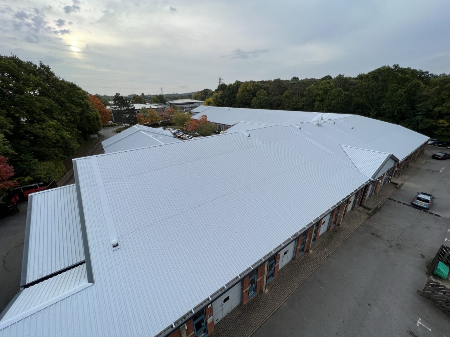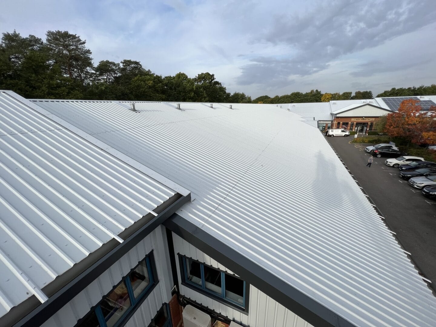 Supporting businesses in Southampton since the 1990s, the New Forest Enterprise Centre is a hub of activity that promotes a community atmosphere for new and small businesses, comprising 37 offices and 34 light industrial workshop spaces. The existing trapezoidal metal roof system was at the end of its life and in a state of disrepair. The factory-bonded coating was peeling away, numerous leaks from penetrations across the site and problematic external drainage had caused gutters to overflow during heavy downpours.
